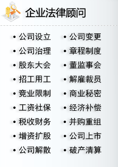 企业法律顾问网:公司法律顾问律师,公司律师,股权纠纷律师,劳动律师,公司诉讼律师等......